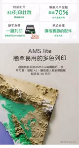 - 多色列印:Combo 系列含 AMS 系統,可進行四色列印或材質切換