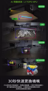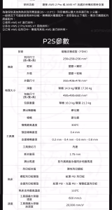 多色列印: Combo 系列含 AMS 2 PRO 系統,P2S 可連接 4 組 AMS 2 Pro 與 4 組 AMS HT,共 8 組 AMS 模組、20 個料槽,支援最高 20 色列印